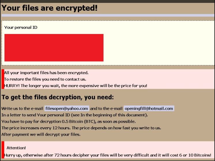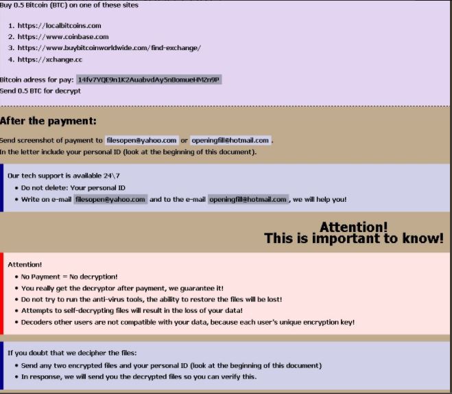 You have to pay for decryption 0.5 Bitcoin (BTC), as soon as possible.